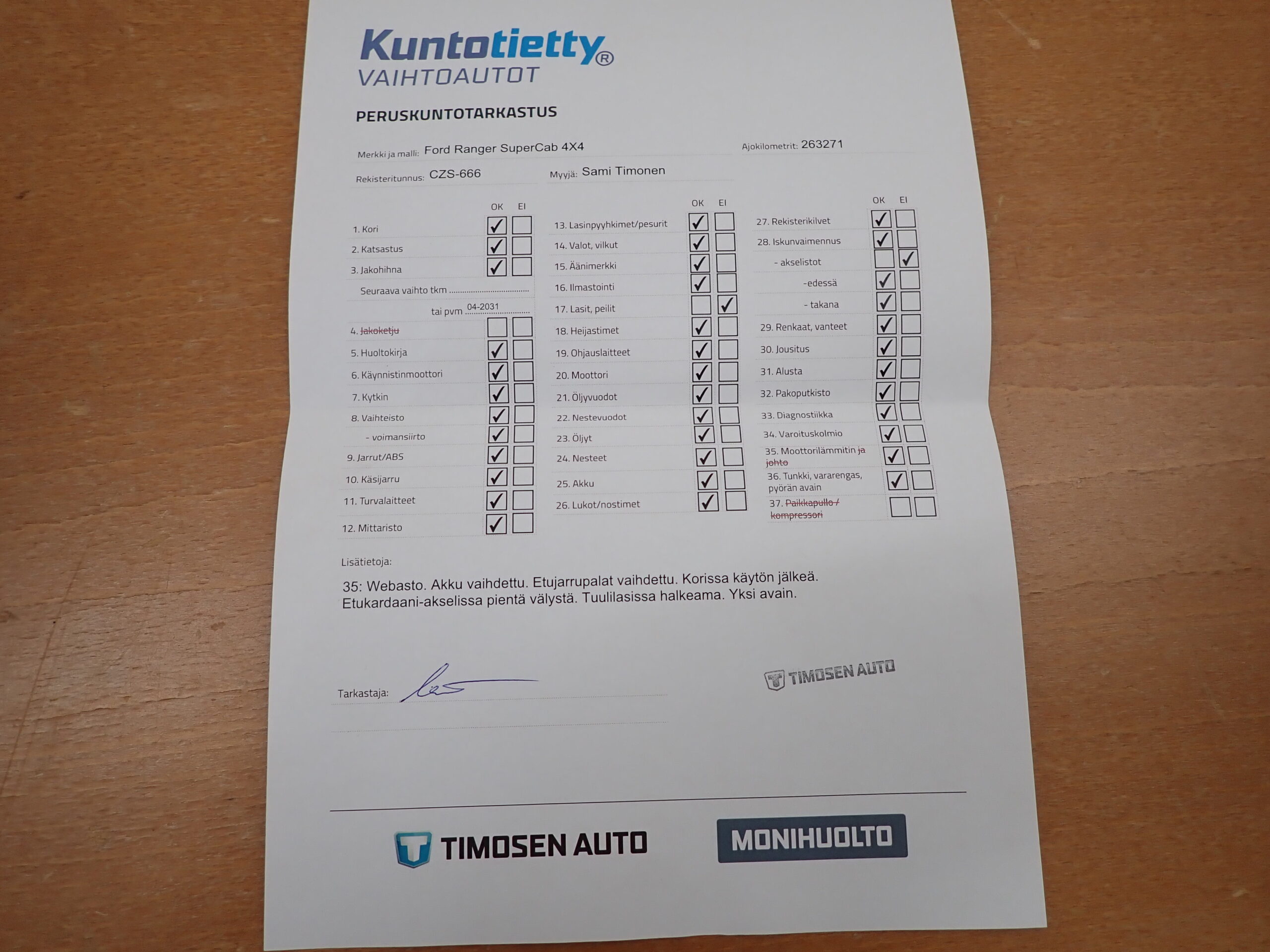 • Huoltokirja