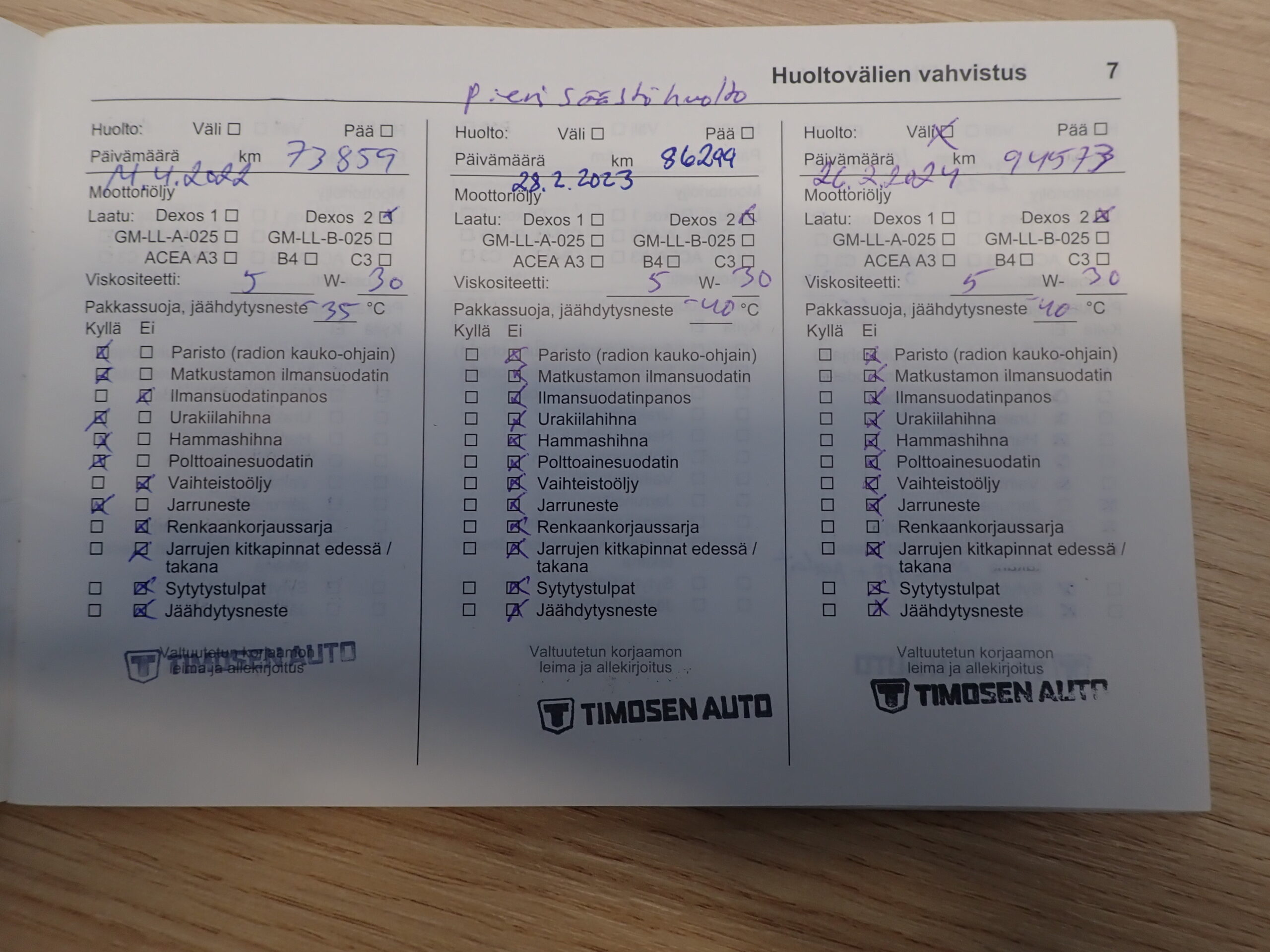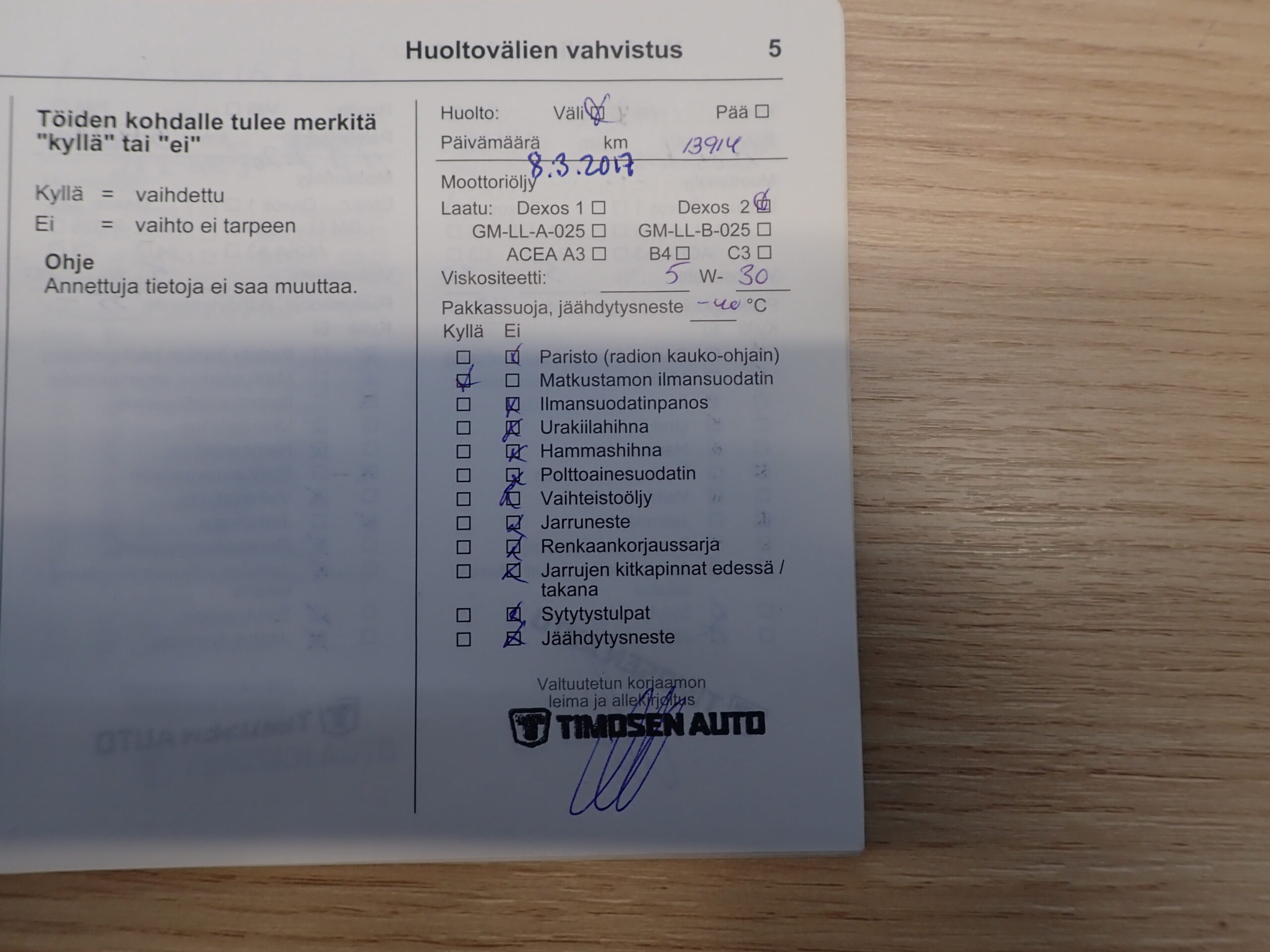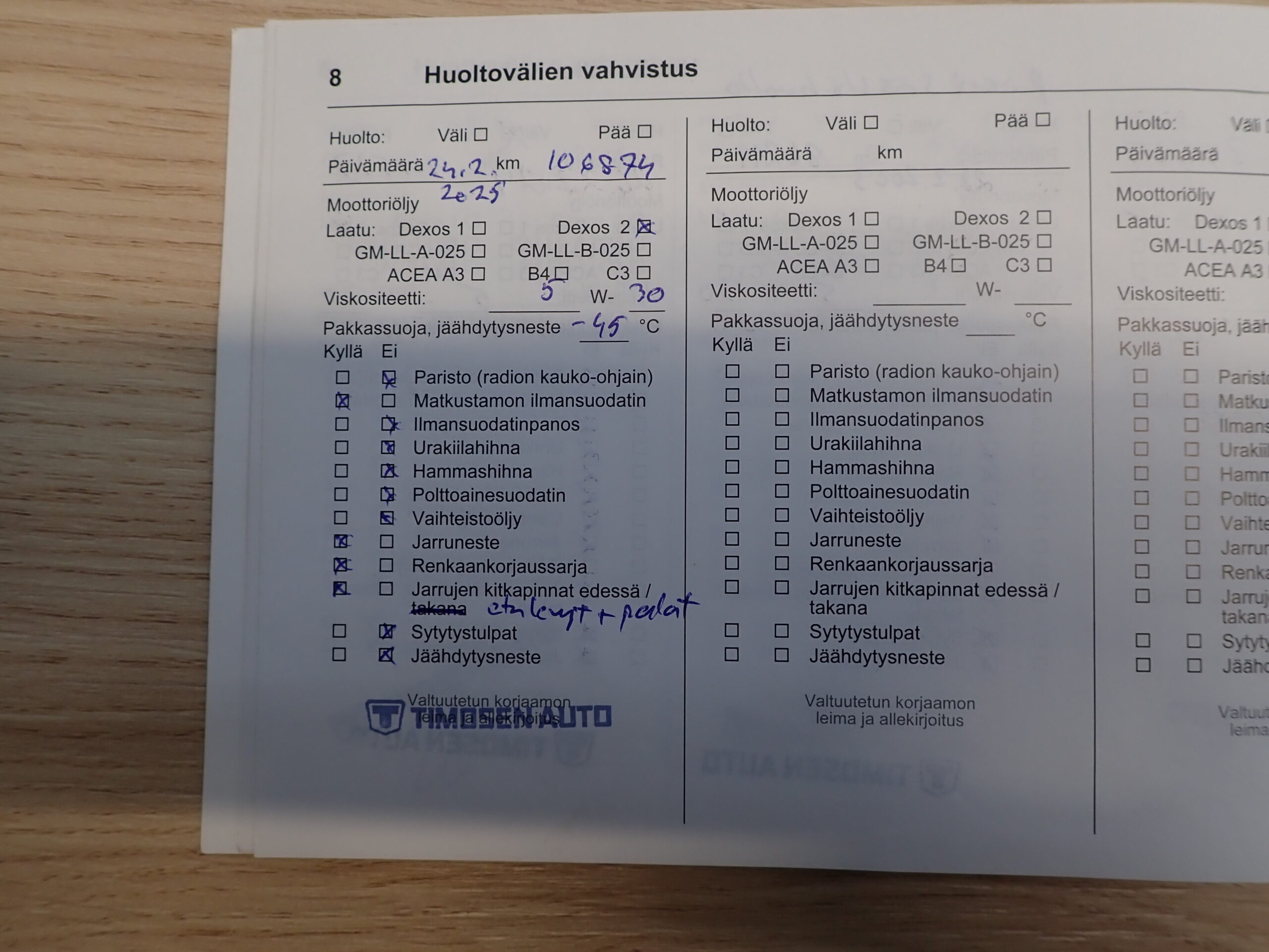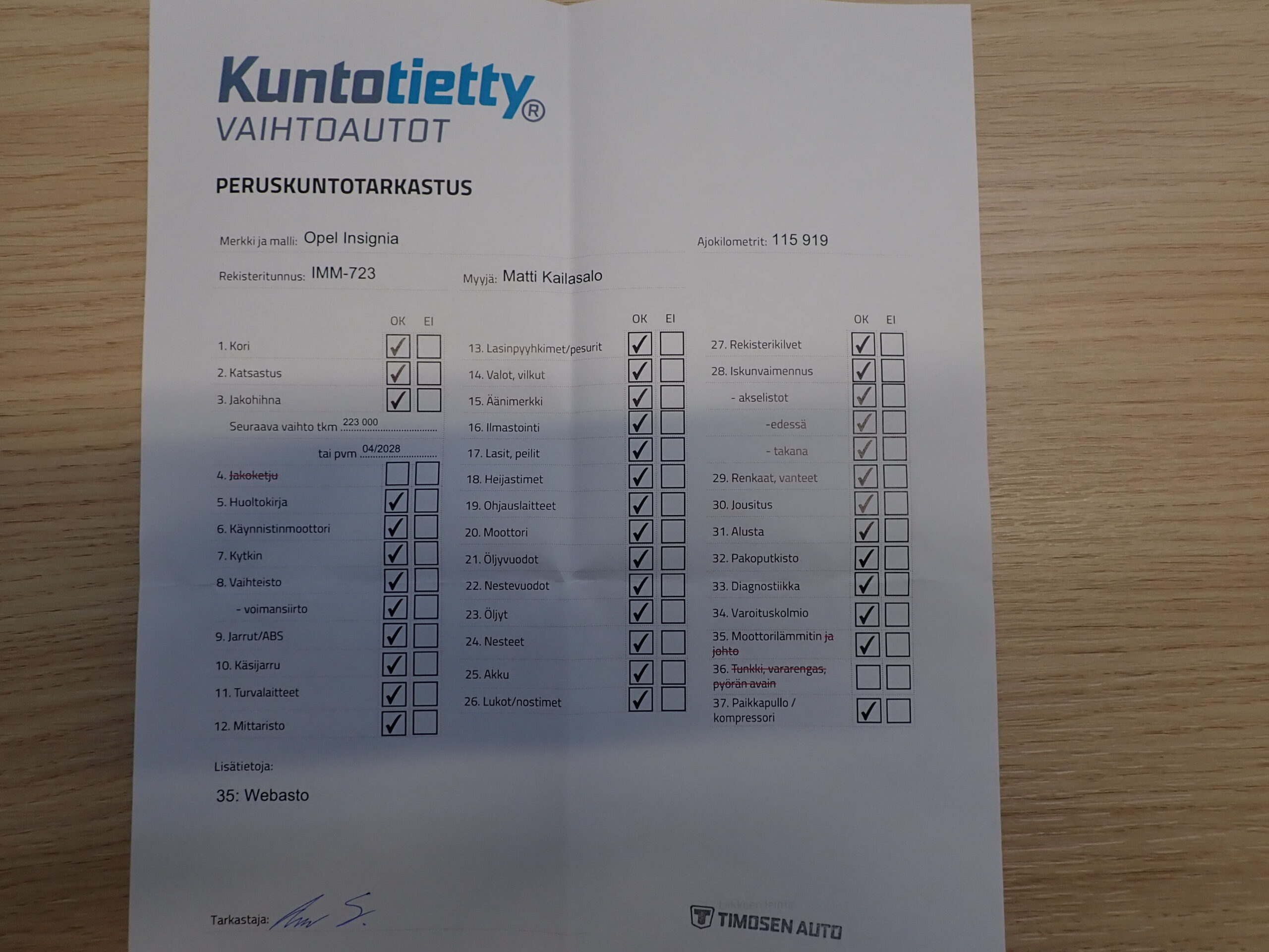 - Huoltokirja(huollettu säännöllisesti)
