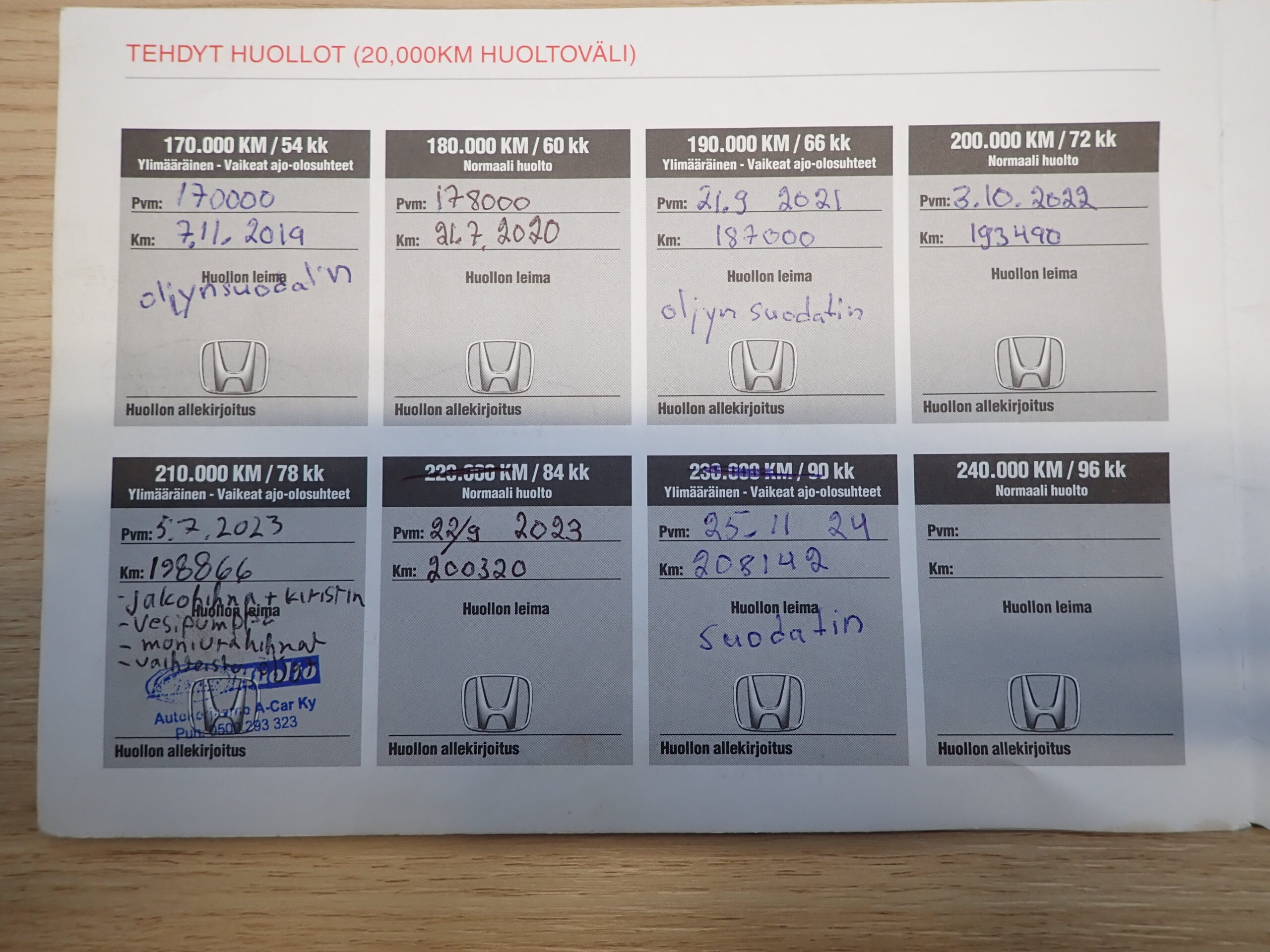 • Huoltokirja