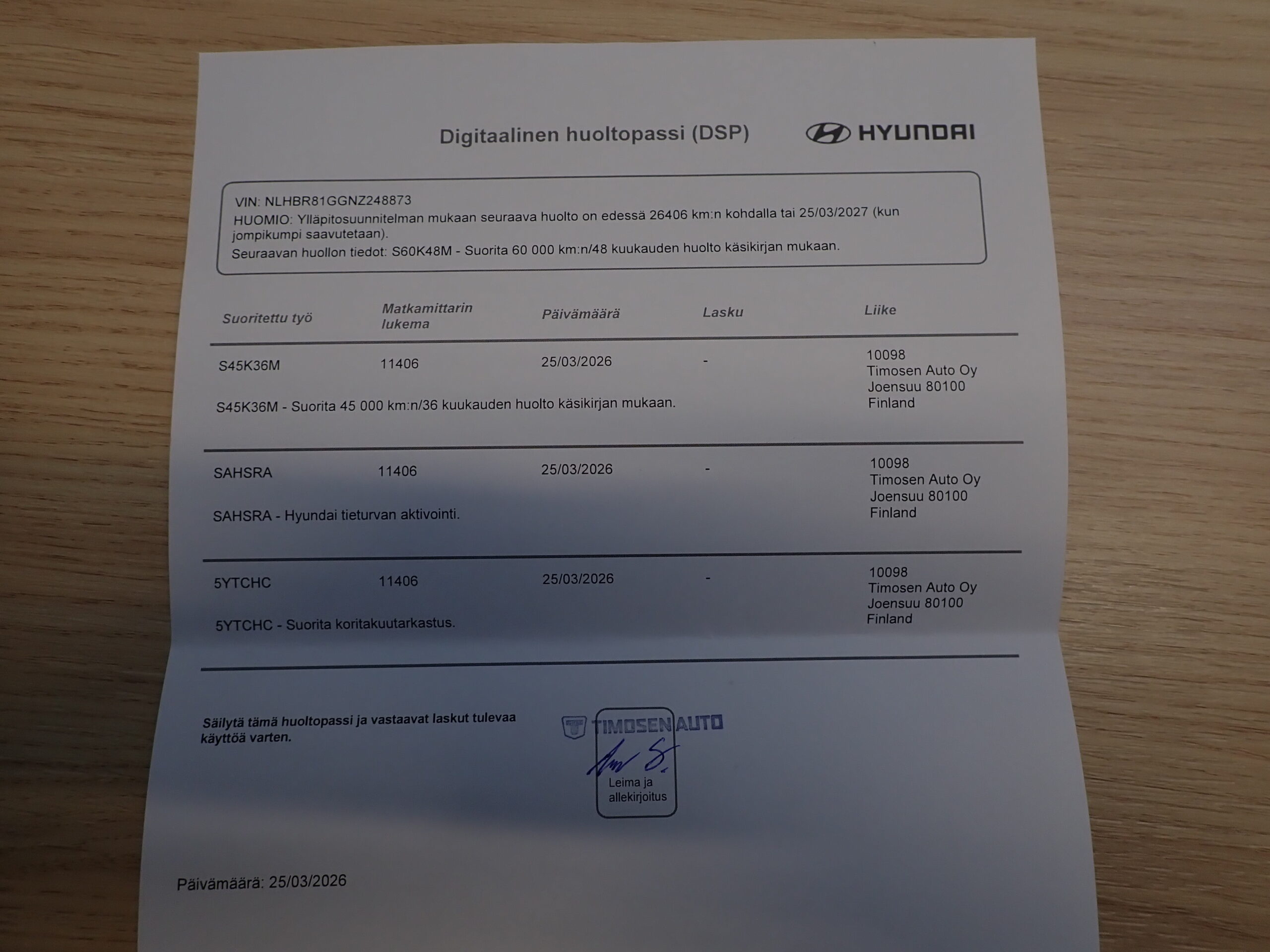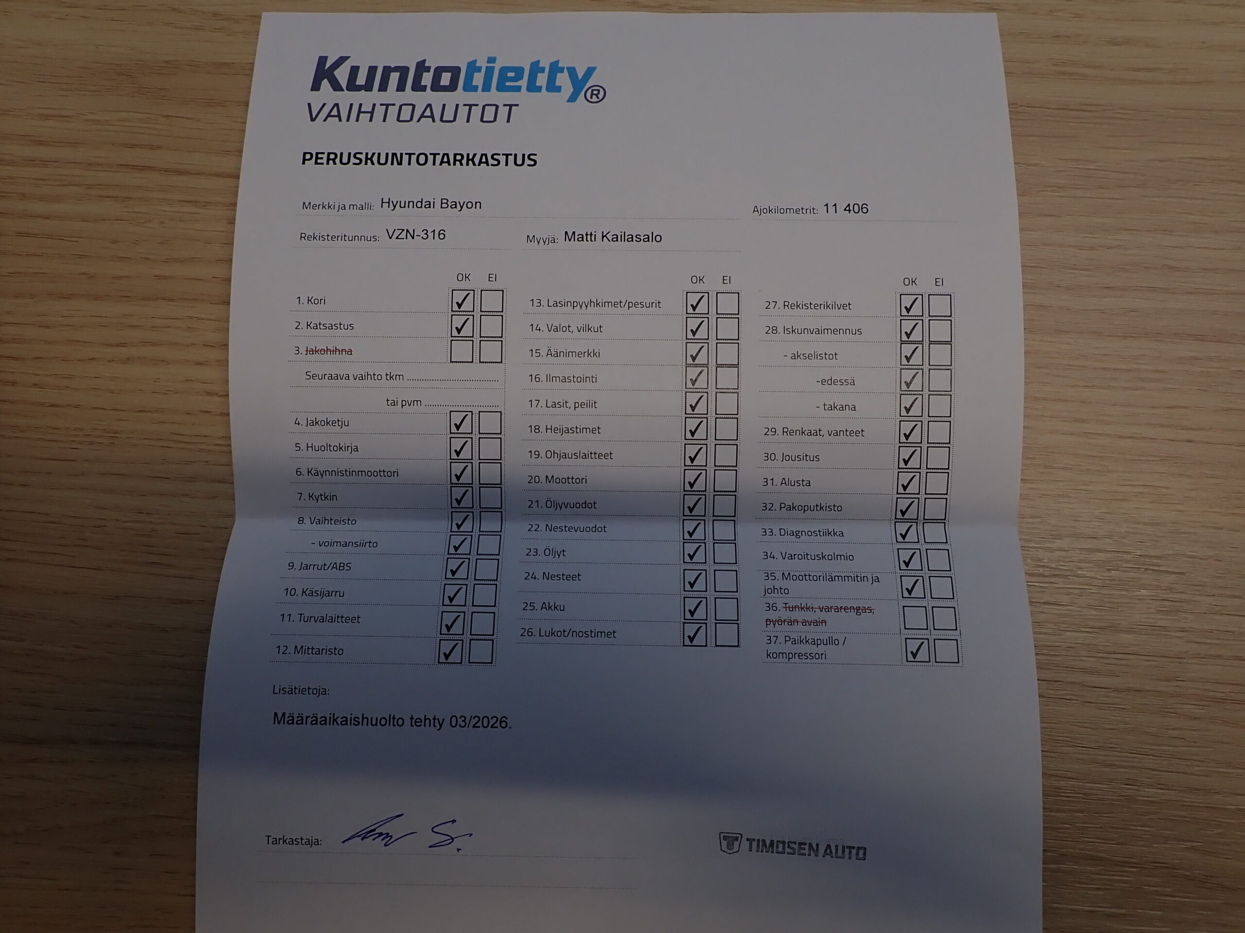 • Sähköinen huoltokirja(merkkihuollettu)