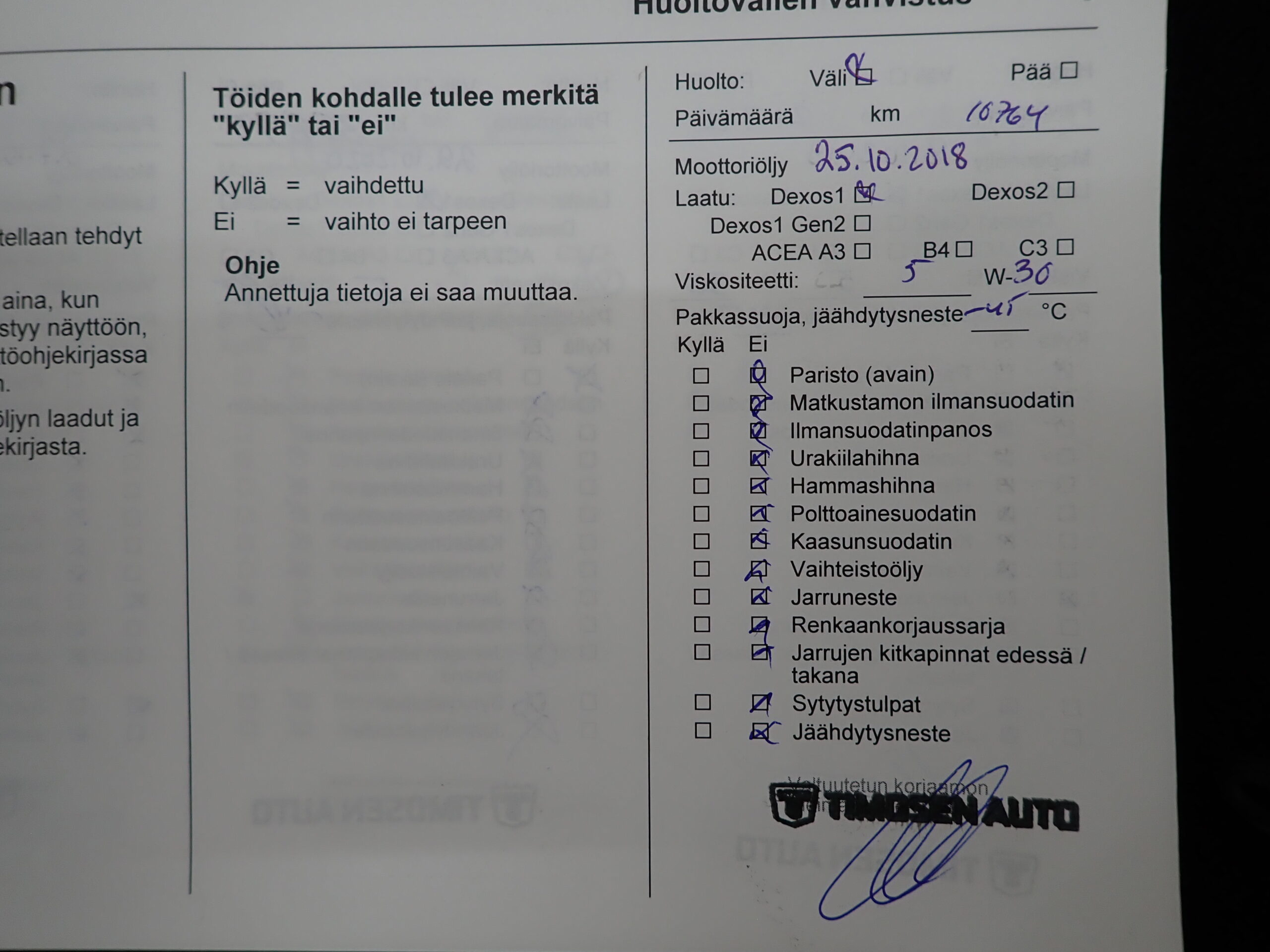 • Huoltokirja