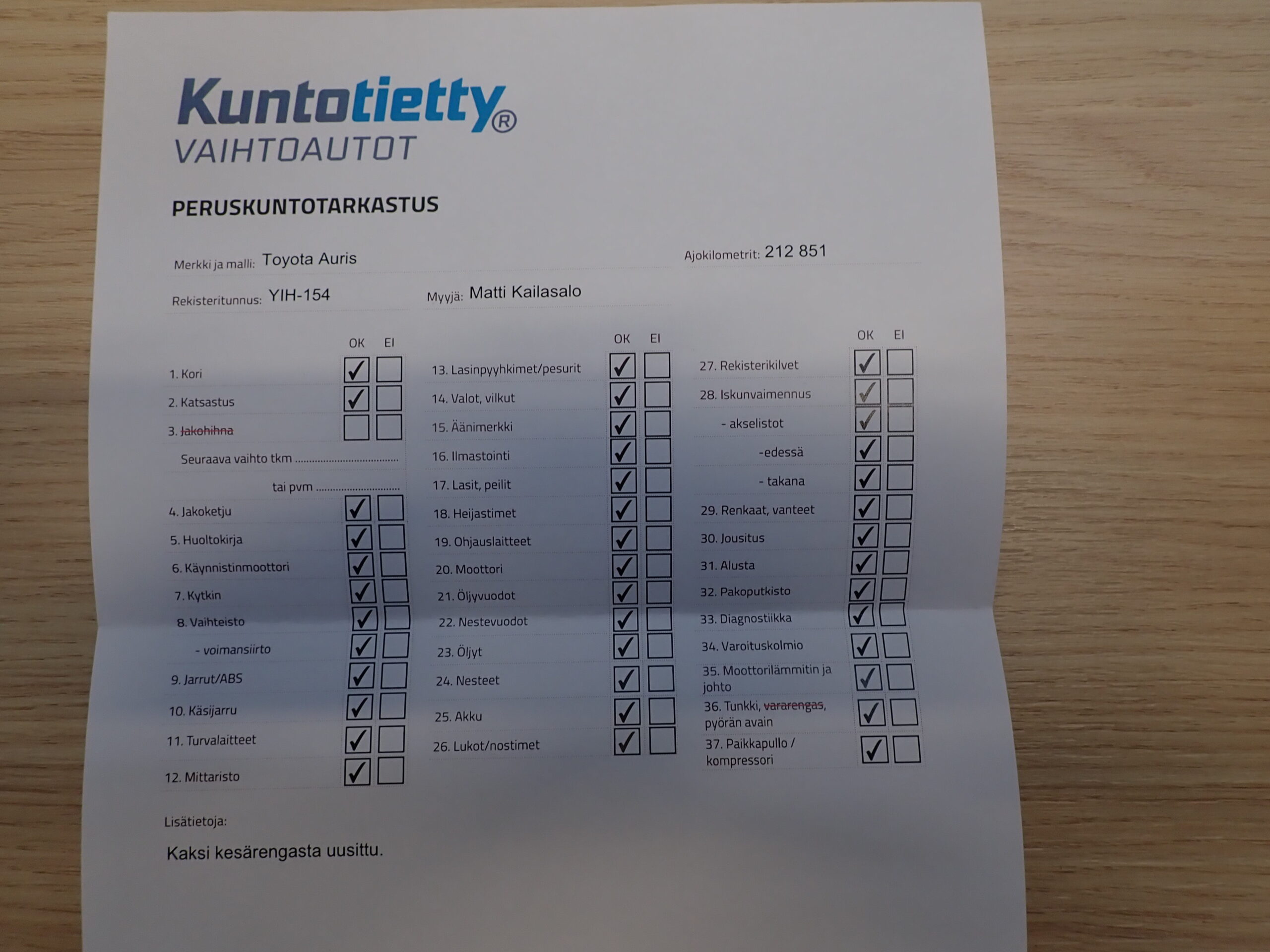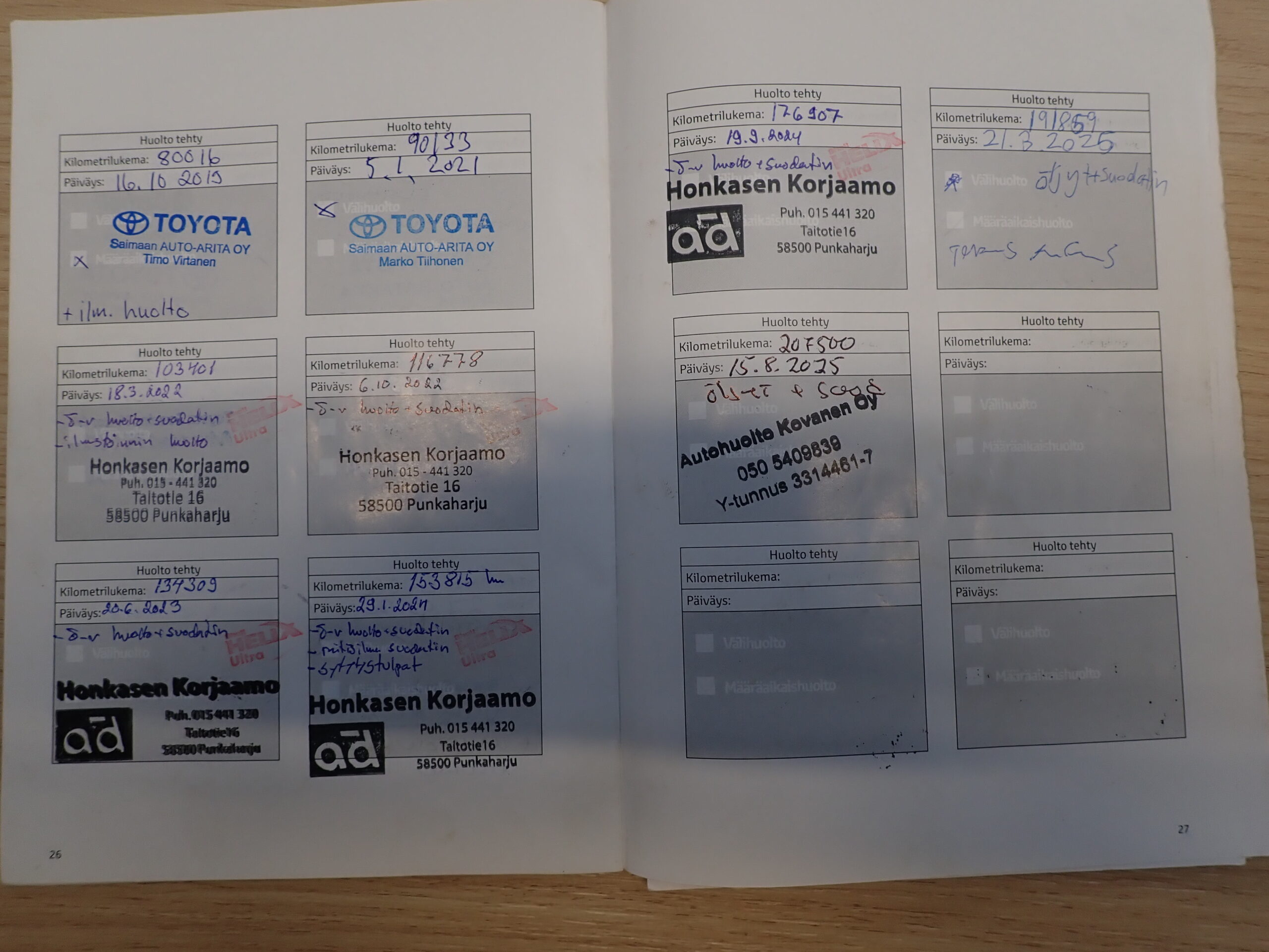 • Huoltokirja(säännöllisesti huollettu)